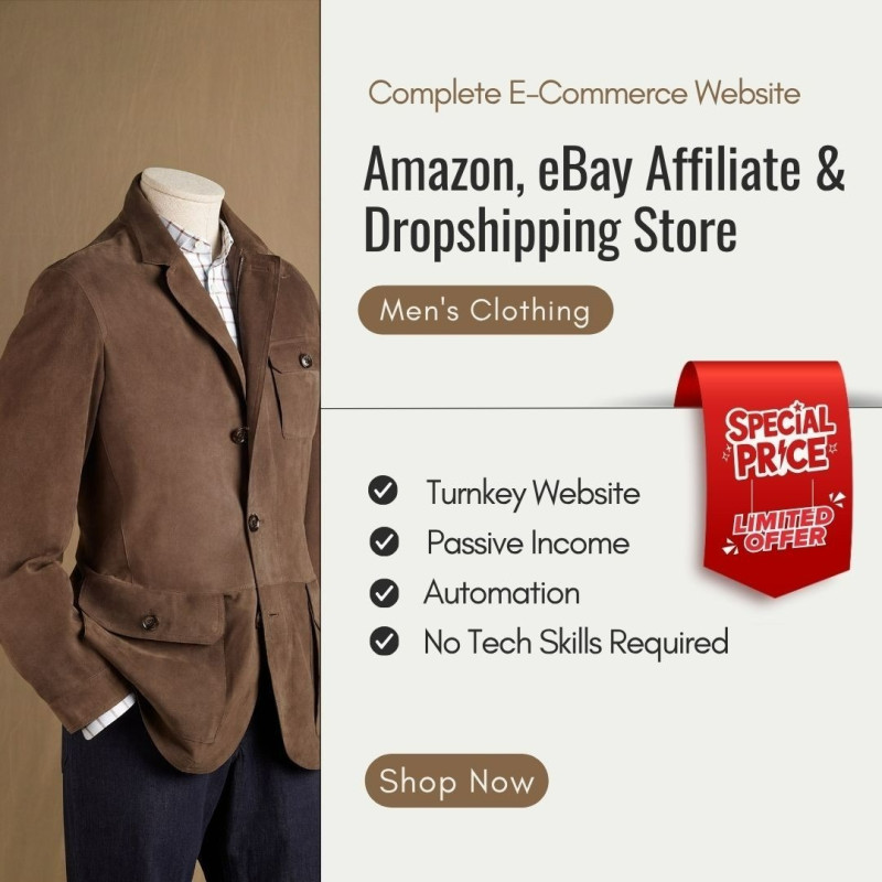 Launch your automated Men's Clothing Affiliate affiliate/dropshipping website today.